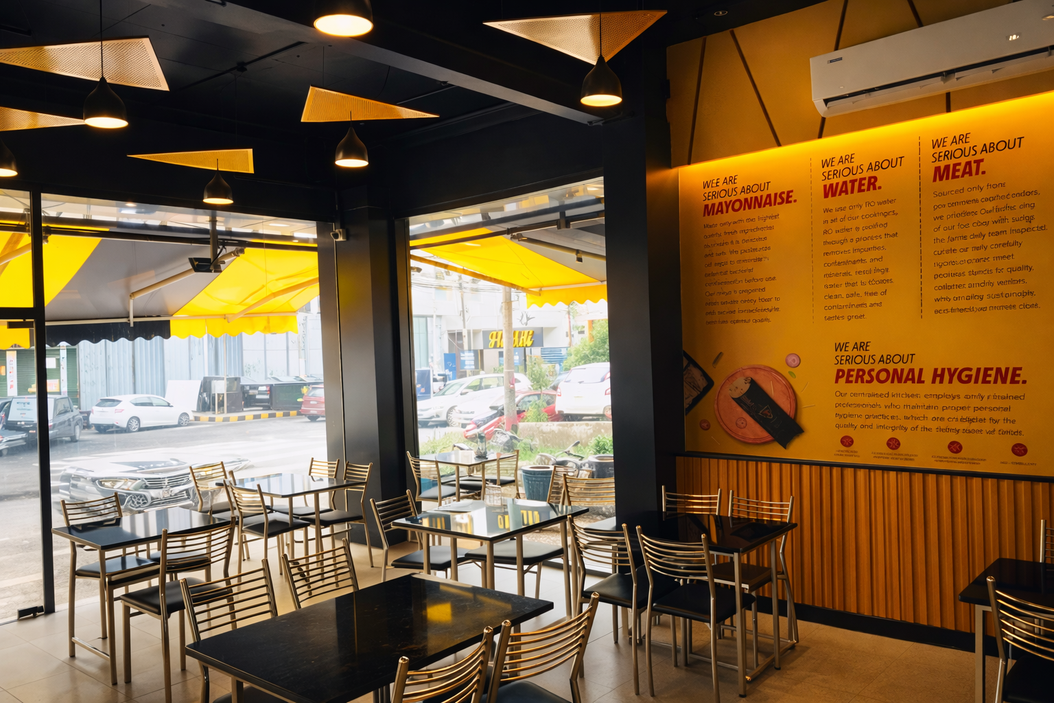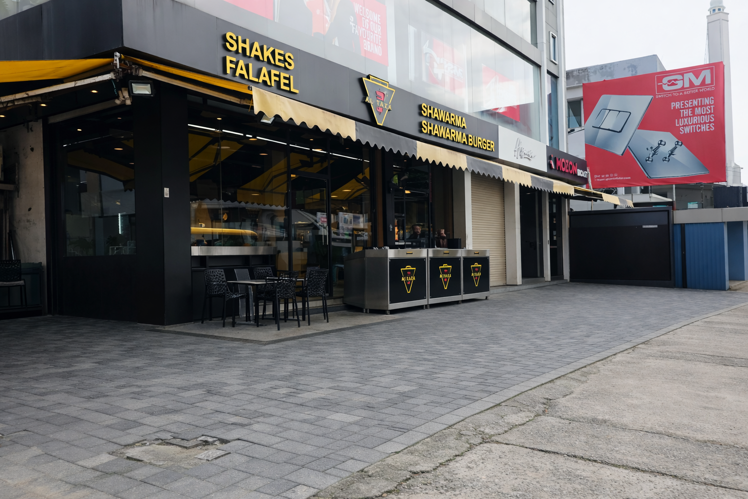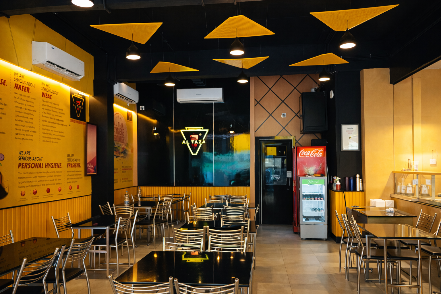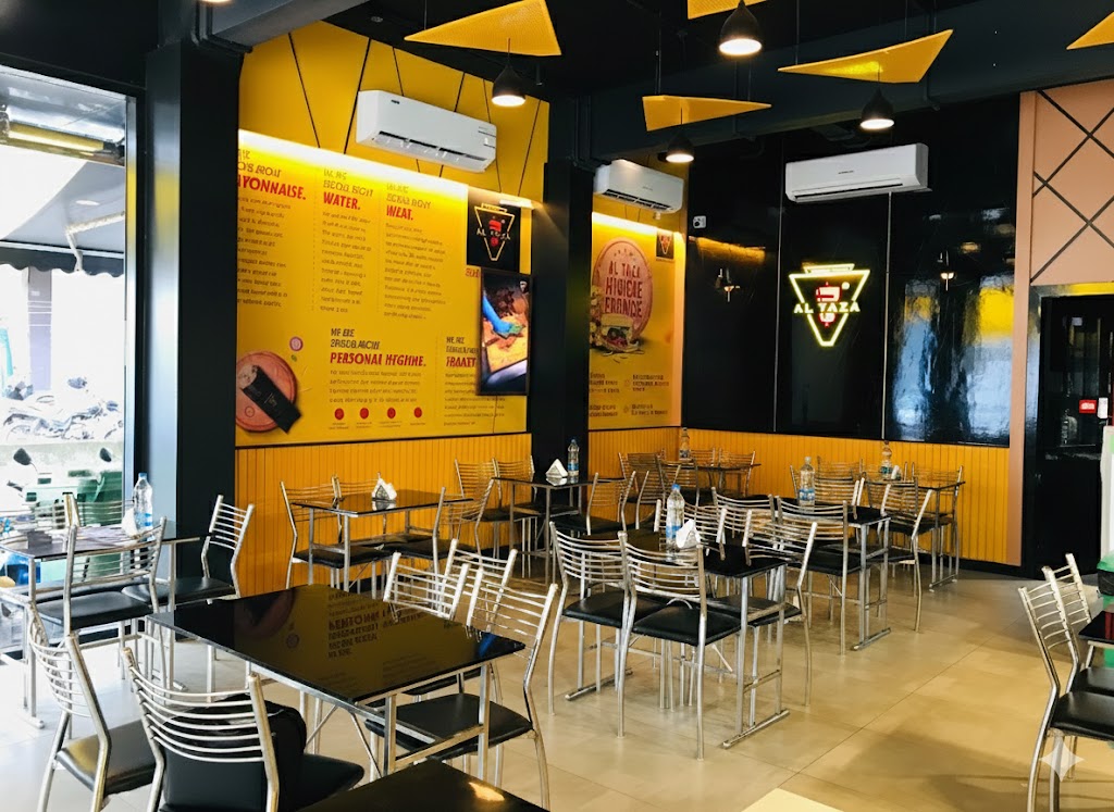 Al Taza Calicut offers comfortable dine-in seating. Customers can place takeaway orders through Al Taza’s IVR phone system or via the WhatsApp ordering service and collect their order from the Calicut outlet within 10–15 minutes.